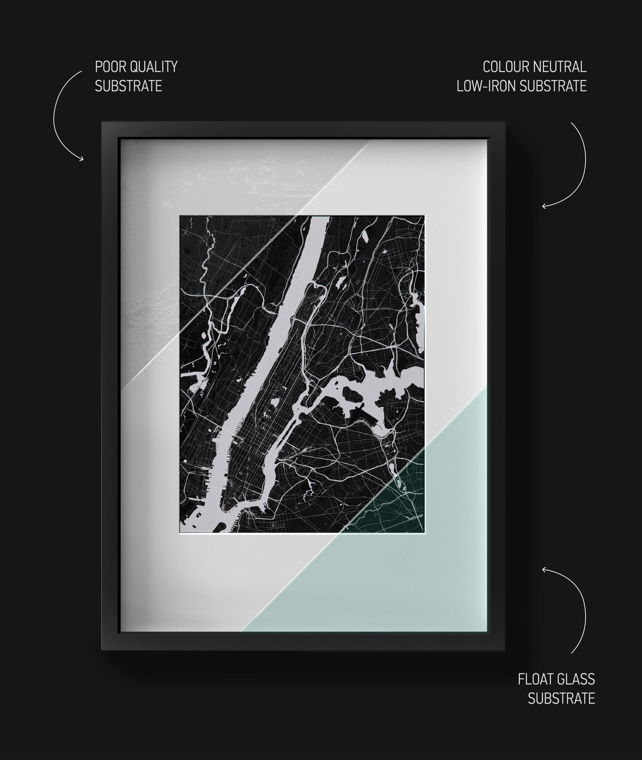 But when glass is used to present artwork, neutrality becomes critical. Even small material differences can influence how the final product performs.